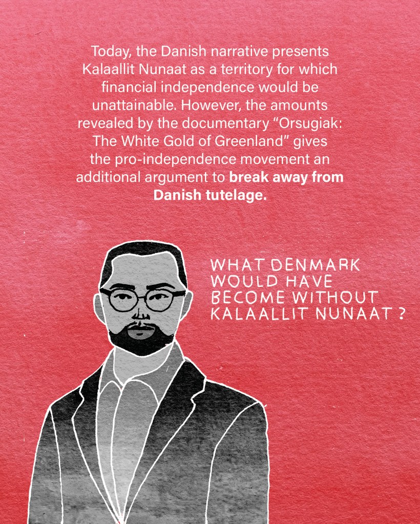 Previewed in Nuuk (the capital of Kalaallit Nunaat), the documentary caused a stir among Kalaallit (pl. Greenlandic) citizens and politicians. For the president of Siumut, one of the main parties in the ruling coalition, Erik Jensen, the documentary shows that the Kalaallit’s desire for independence is not unrealistic: “It has reinforced our feeling that we can stand on our own two feet at Kalaallit Nunaat. That we’re not just an expense.” Reversing the stigma, Prime Minister Kalaaleq questionned: “What would Denmark have become without Kalaallit Nunaat?” For Sara Olsvig, president of the Inuit Circumpolar Council (ICC), “the documentary should give further impetus to Denmark’s journey towards a better understanding of itself as a colonial power.” In Denmark, however, the documentary has triggered fierce criticism, particularly from the Conservative and Liberal parties and the Minister of Culture, Jakob Engel-Schmidt, who called the documentary “disinformation”. While several economists have cast doubt on the figures that have crystallized the criticism, Torben M. Andersen clearly emphasizes in the documentary that it is a calculation of total sales, not profits. For economist Arindam Banerjee, who also takes part in the documentary, it’s important to factor the colonialist relationship into the equation. The fact that Denmark had a monopoly in Kalaallit Nunaat (until 1950), that mining was run by a Danish company, and that Danish workers ran and participated in the operation, all contributed to benefiting the Danish economy in the end. This is why the 400 billion figure can be considered a profit for the Danish company at the expense of Kalaallit Nunaat.