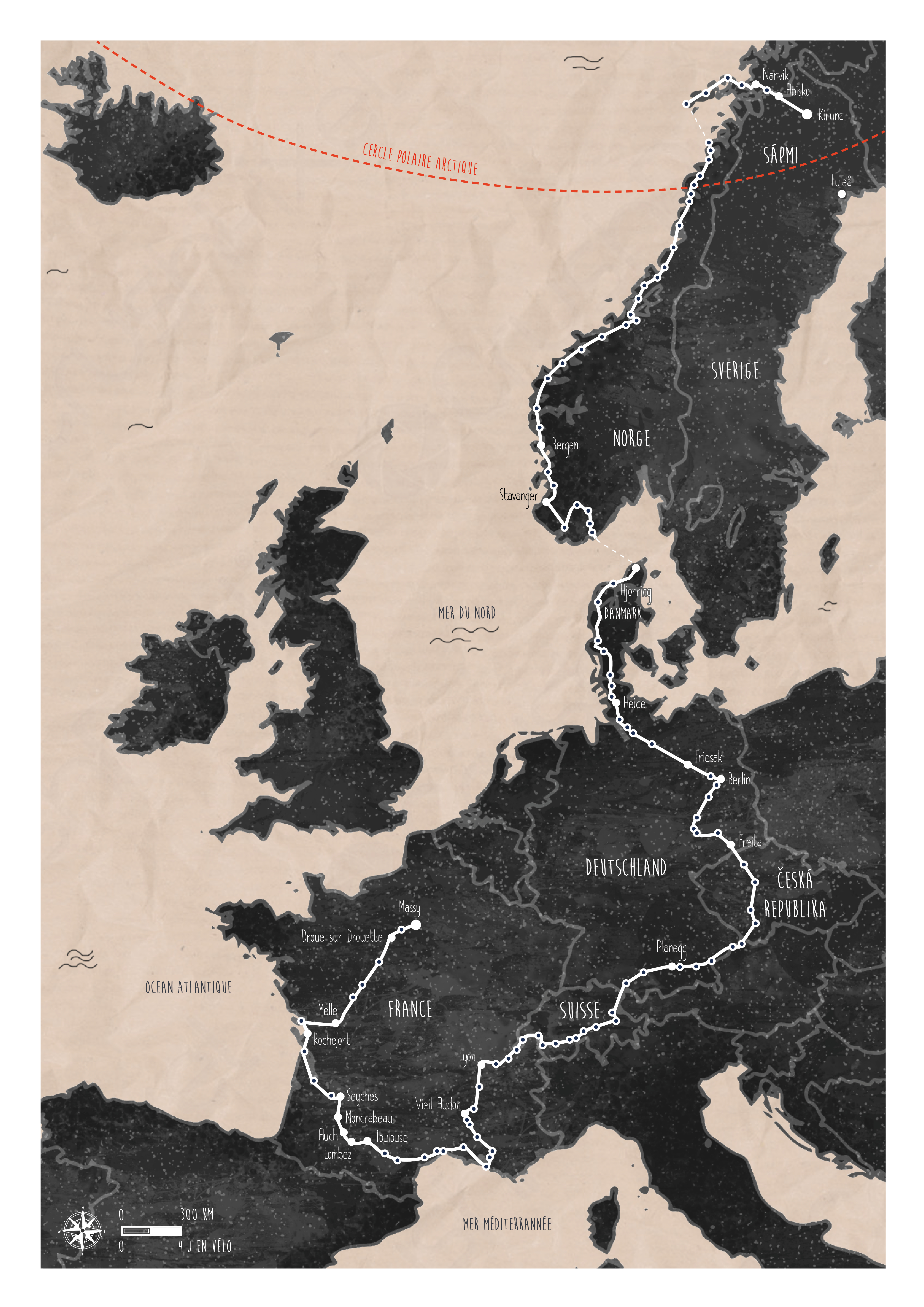 From May to November 2020, we cycled almost 8,000 kilometers to Kiruna, Sápmi, in northern Sweden (see map). Along the way, we encountered a multitude of landscapes and people to whom we gave a voice. We filmed some of our exchanges, and spent our time chatting as we went. We asked everyone to tell us what was important to them, what changes were taking place in the places where they lived, and how they saw their future in the territories we visited. Is climate change visible, threatening, important? What other changes are people concerned about? How can we make the world a different place?